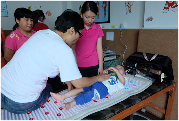 活动中我们看到2008年出生偏脑瘫小男孩轩轩,因为早产,出生时只有2.4斤,直到3岁都坐不稳,语言表达也有障碍,做了多次手术及复健,现在我们看到的他聪明伶俐,双脚也在慢慢变得有力康复效果令人满意。当问到他的理想是什么时,小轩轩脱口而出“我想成为一名医生,因为可以给人治病”,病痛使医生成为他常见的人,医生在他心目中是神圣万能的,所以他健康长大以后,也想成为医生,扶贫救人。他的心愿是赚了钱要给一直照顾自己的奶奶买衣服买好吃的。他们拥抱时会不好意思,会挥手说再见,还会亲吻一直照顾自己的奶奶、妈妈。