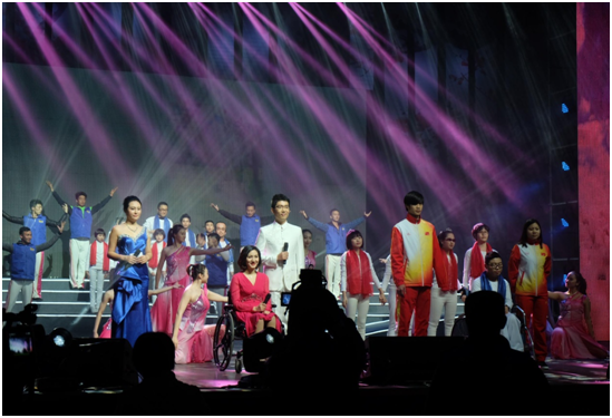 这是融合了一千多人的音乐盛会,中国青年励志人物、全球热爱生命奖得主、湖南电视台公共频道主播梁艺为音乐会主持人,世界残障运动名将刘辅梁、林萍为爱心大使。音乐会在歌舞《请带我飞》中拉开序幕,舞蹈《逛花街》《卓玛》等一个一个曲目掀起音乐高潮,震撼所有嘉宾。特别是由残疾儿童表演歌唱《哥哥》、《你是我的眼》更是感动万分。