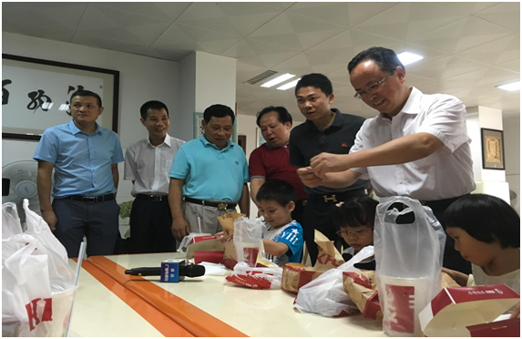启动仪式后,清远市人民政府副市长雷玉春、广东省残疾人公益基金会理事长郭德勤、中国邮政储蓄银行广东省分行副行长管伟红等领导和嘉宾一行前往清远市残疾人联合会康复中心对正在康复的小朋友进行了慰问,并赠送了书包等爱心物品。