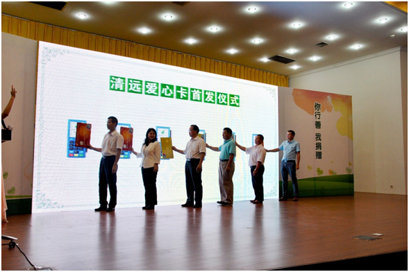 2017年9月13日上午11:00以“点亮梦想、为爱同行”为主题的2017清远市全民公益爱心倡导活动暨清远市首张爱心卡首发仪式在清远国际会展中心隆重举行。本次活动由清远市人民政府、广东省残疾人基金会、中国邮政储蓄银行广东省分行指导,由清远市残疾人联合会、中国邮政储蓄银行清远市分行、清远市正向文化产业发展有限公司联合主办。