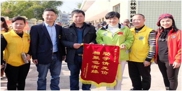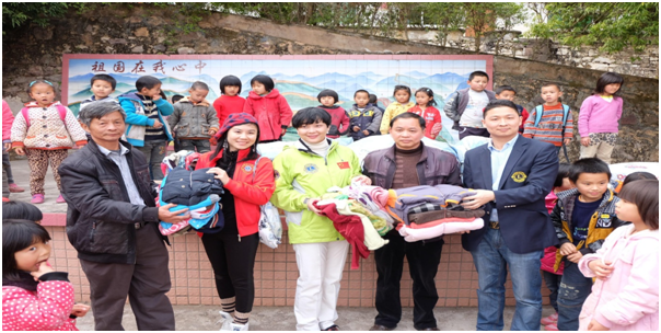 2015年1月9日,广东省残疾人公益基金会联合广东狮子会粤明服务队、东江服务队、钟爱服务队、槎城服务队到河源和平县林寨镇开展“新春送温暖”活动。为和平县林寨福利院、浰江中学、石江小学孤寡老人及贫困孩子送去中粮—可益康高钙蛋白粉”、温暖冬衣及诚挚的新春问候。