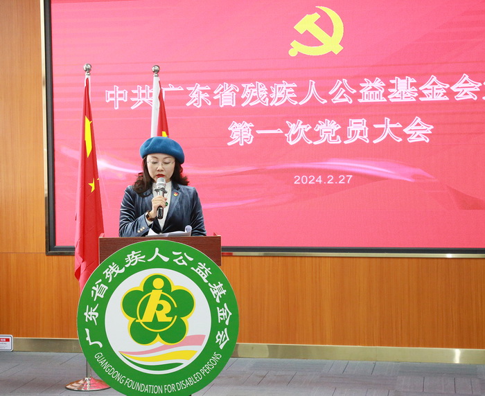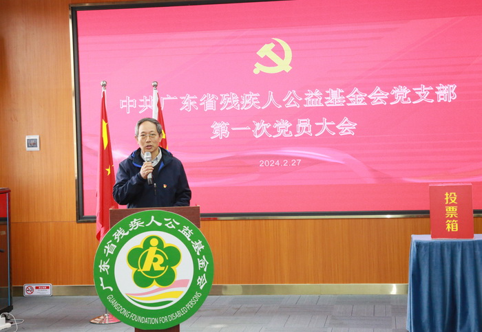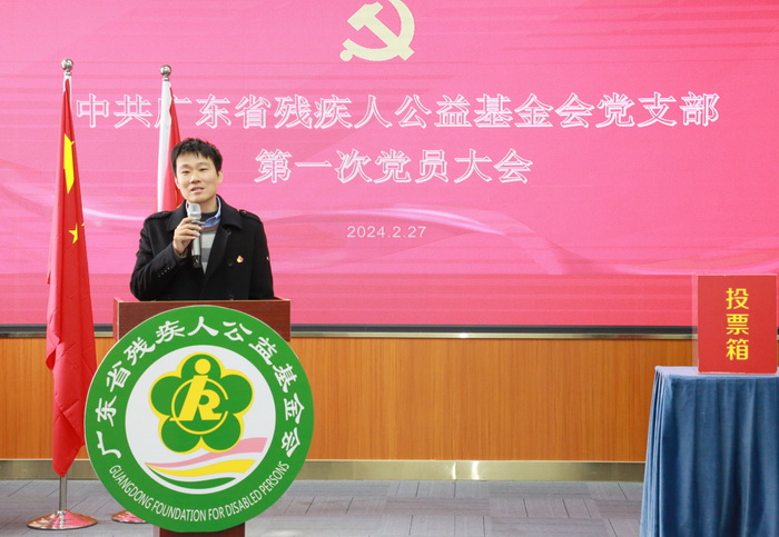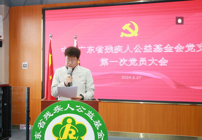大会在庄严的国歌声中开始。会上,广东省残疾人公益基金会支部党员刘开诚首先宣读了省残联直属机关党委关于基金会党支部成立的批复。